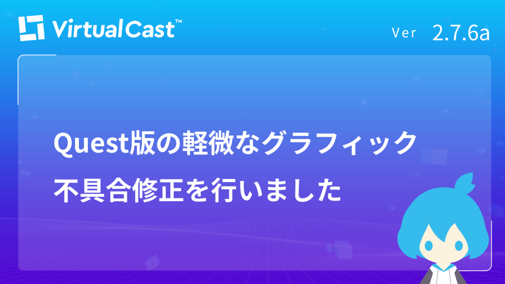 現在確認されている不具合と対応状況は不具合対応状況をご確認ください。 バーチャルキャストアプリ 不具合修正 Quest版において特定の条件でStandardシェーダーを使用したオブジェクトが白くなる問題を修正しました。 ...